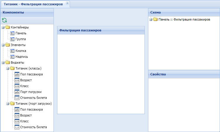 Форма настраивается путем формирования её структуры в Схеме, с помощью добавления в неё компонентов и их настройки.