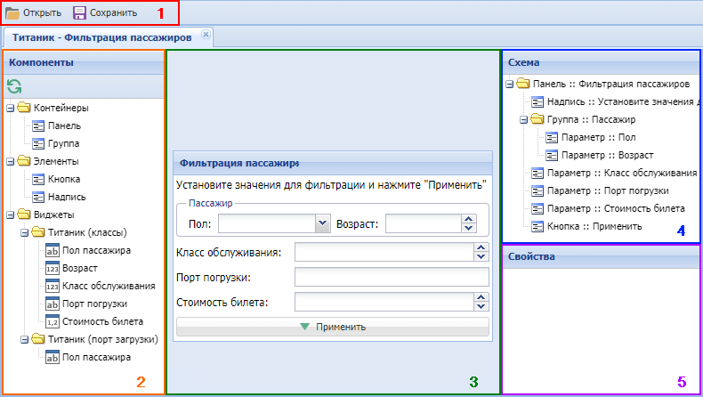 Раздел рассказывает о инструментах редактора форм и детальное описание всех компонентов формы приведено в разделе Компоненты формы параметров