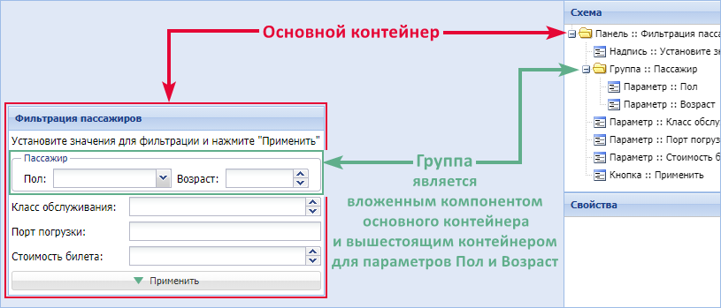 Настройка всех компонентов осуществляется путем изменения значений их свойств. При этом на настройку компонента могут влиять свойства вышестоящего контейнера.
